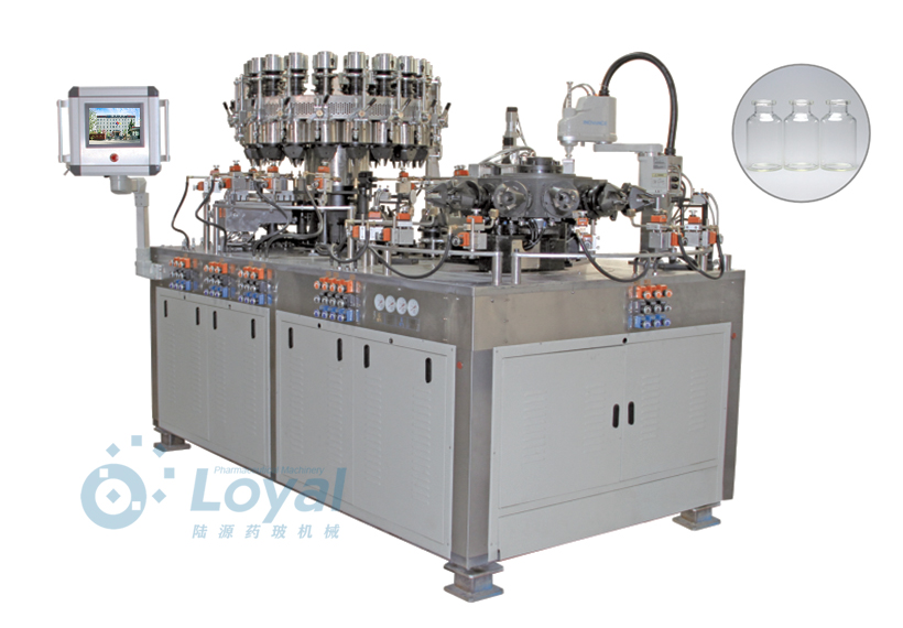 西林瓶生產(chǎn)線包括:自動(dòng)上管、自動(dòng)成型、經(jīng)機(jī)械手轉(zhuǎn)換至前端檢測線(也叫生產(chǎn)管控)、檢測線檢測的項(xiàng)目:1、瓶口內(nèi)外徑 2、瓶身長短 3、瓶身外徑 4、瓶口邊厚 5、瓶底內(nèi)凹尺寸檢測;經(jīng)檢測后的合格品再用機(jī)械手夾盤轉(zhuǎn)換至退火爐網(wǎng)帶上,經(jīng)高溫減除應(yīng)力后再降溫,通過氣動(dòng)吸盤將回火后的小瓶轉(zhuǎn)換至后端檢測線,后端檢測(也是重檢也叫終檢),經(jīng)后端拍照檢測項(xiàng)目